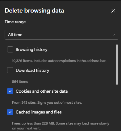 If you want to keep your previous visited site and downloads uncheck the two top check boxes (Browsing History and Download History).